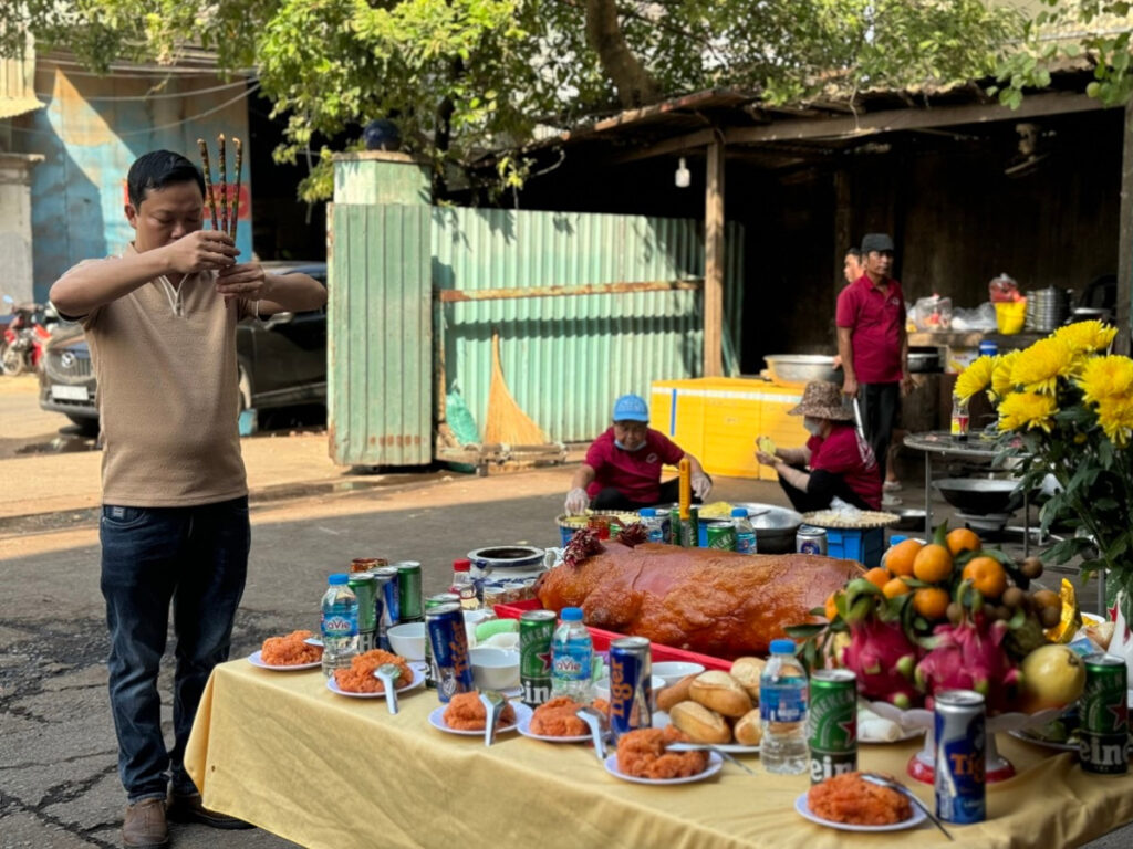 Ông Võ Thanh Phong cúng tổ tại nhà máy Saigon Wood chi nhánh Dĩ An