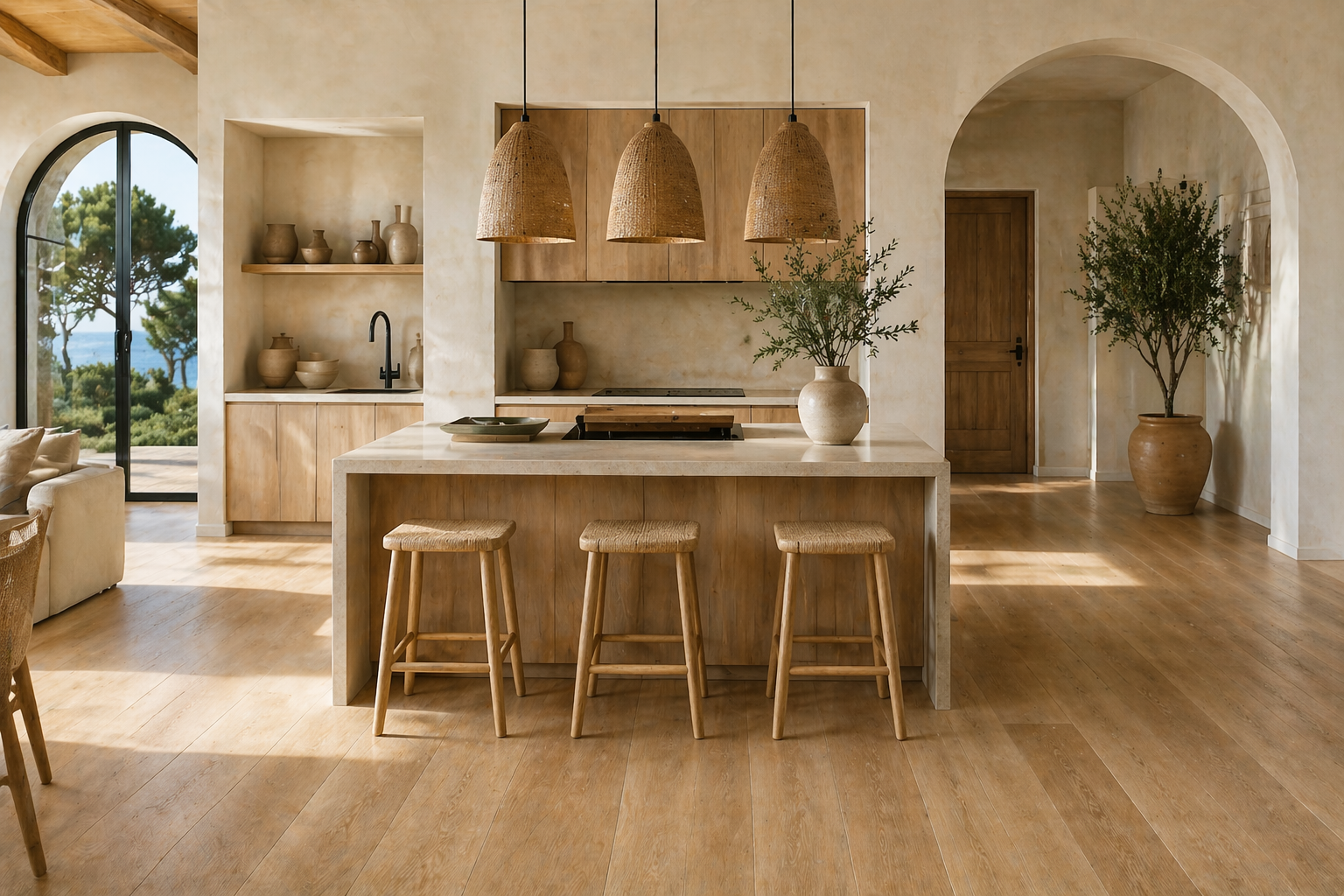 Sàn gỗ phong cách Địa Trung Hải: Khi Modern Mediterranean trở thành chuẩn sống nghỉ dưỡng